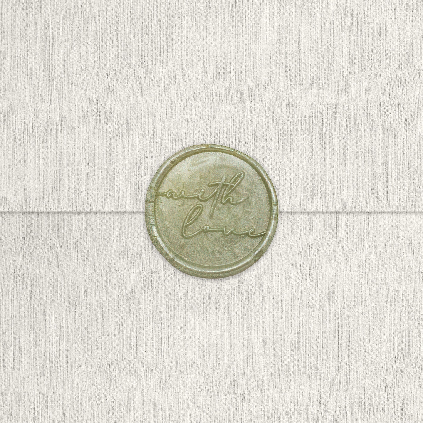 Seal your invitations with a little extra sentiment. Our With Love Script Wax Seals feature a flowing handwritten-style inscription, adding a romantic finishing touch to your envelopes, save the dates and day-of stationery. The elegant script design feels personal and heartfelt, making every piece of mail feel like a keepsake.